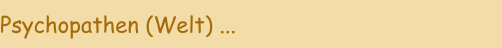 2017: Jeder der hier „Chef“ spielen will, ist ein Psychopath. Wir sind von Psychopathen umzingelt. (Destruktiv) Wenn du sie erkennen willst, musst du dich mit den Themen dieser Welt beschäftigen. (Lesen-Wissen-Erkenntnisse) Dich so weit wie möglich trennen, und eine konstruktive Lebensweise führen. Aber, du bist in diesem Psychopathen System gefangen. Trotzdem solltest du dich geistig und körperlich wehren, so gut wie möglich. Es sind mehr destruktive Psychopathen unterwegs, wie du glauben magst. Ich nenne sie ja; „Arschlöcher“ oder „Seelenficker“ aber das ist meine Sache. Cord Weger
